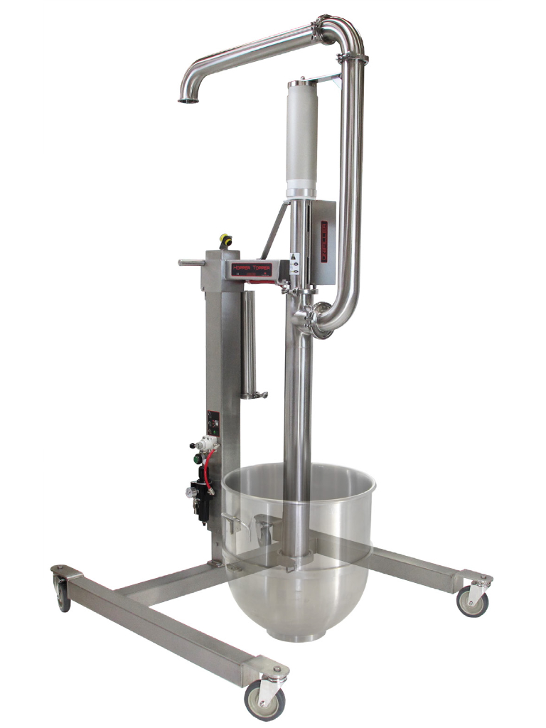 Přečerpávací čerpadla UNIFILLER Hopper Topper dopravují hladké, tekuté nebo hrudkovité těsto přímo z míchací nádoby, kbelíku a jiných nádob k naplnění násypky vašich dávkovacích systémů a potravinářských strojů. Světelný senzor zajišťuje udržování požadované hladiny v násypce a stará se o automatické a průběžné doplňování.